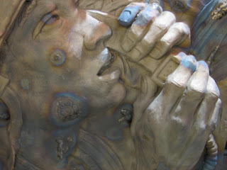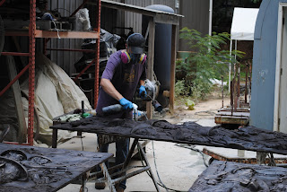The first step in the casting process is to paint the entire project with several layers of rubber. Every detail is captured by the rubber down to the artists finger print. Then a plaster cast is made on the outside of the rubber. Once dry the plaster is sawed into sections and the rubber is peeled off.