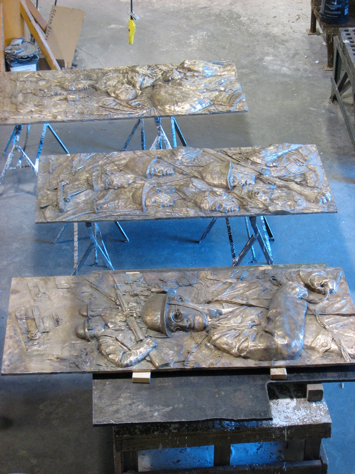 My father and I did not create the panels for the veteran’s monument in chronological order. We built them in order as follows; Vietnam, WWII, WWI, Korea, and finally the Persian Gulf. There are portions that I worked on alone, as well as portions he worked on alone. But most of the work was created together, side by side. The most exciting part of working on any piece of artwork is watching it come into reality as you progress.